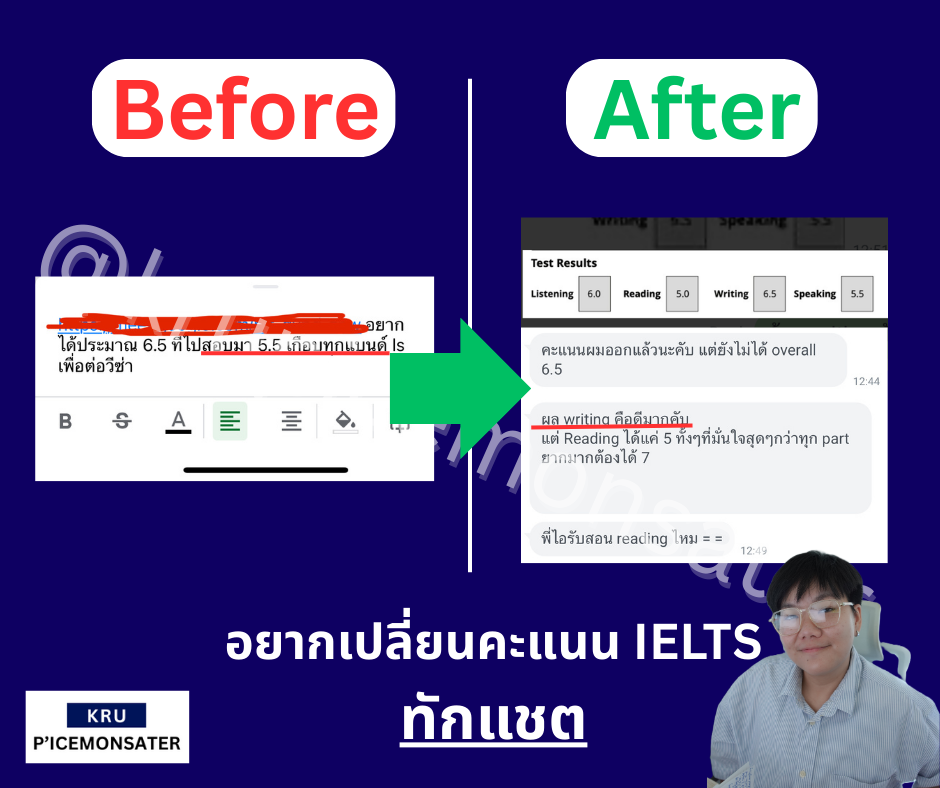 และครูเข้าใจข้อสอบทุกอย่างดีมากที่เป็นภาษาอังกฤษจากประสบการณ์ที่เก็บเกี่ยวตอนอ่านหนังสือเองเพื่อเข้ามหาวิทยาลัย